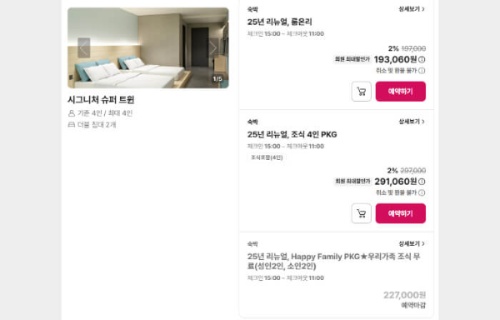 코오롱호텔 객실은 패키지로 이용할 수도 있지만, 할인 가격으로 예약할 수 있습니다. 객실 가격은 시즌이나 요일에 따라 변동이 있습니다.