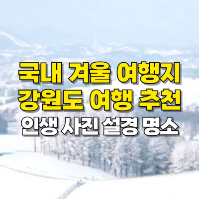 흰 눈이 쌓인 경치는 겨울에만 만날 수 있는 절경입니다. 소개한 강원도 여행지는 지리적인 위치 때문에 눈을 오랫동안 즐길 수 있는 국내 겨울 여행지 추천 명소입니다. 하얀 눈이 쌓인 자연의 아름다움 속에서 특별한 시간을 보내세요.