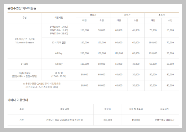 ◈ 설해원 온천 가격