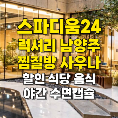 '스파디움24'는 연중무휴 24시간 즐길 수 있는 럭셔리 남양주 찜질방 사우나 핫플이에요. 만화책이 비치된 라운지, 액티브존, 식당 및 카페, 수면캡슐, 안마의자 등 휴식공간이 다양한 복합 문화 공간입니다. 스파디움24 할인, 수면캡슐, 야간 이용 정보 등 이용 꿀팁을 알려드려요.
