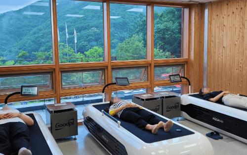 아쿠아라인 : 온수의 수압을 이용하여 근육이완, 혈액순환을 돕는 건식 마사지기입니다.