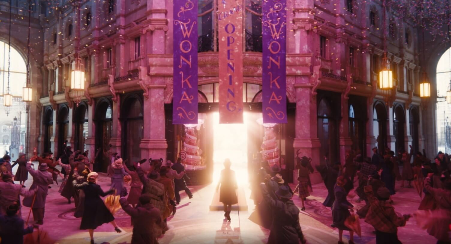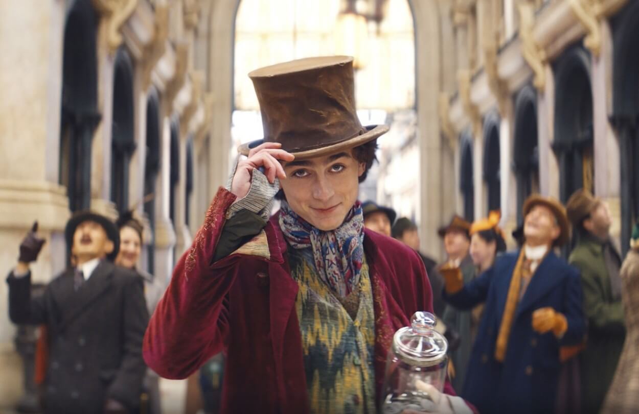 분주한 도시 풍경 속에서 카리스마 넘치는 티모시 샬라메가 연기한 기발하고 야심 찬 윌리 웡카는 자신이 만드는 초콜릿만큼 달콤한 꿈, 즉 대형 백화점 안에 초콜릿 가게를 여는 꿈을 실현하고 싶은 목표가 있습니다.