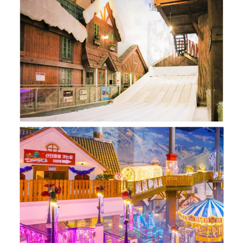 2층은 산타마을 분위기로 사진 찍기 좋은 티니핑 포토존과 깜찍한 이글루가 있습니다. 그리고 실내 눈썰매장은 눈썰매를 처음 접하는 아이들도 안전한 공간에서 짜릿한 눈썰매를 경험할 수 있는 미니 눈썰매장입니다.