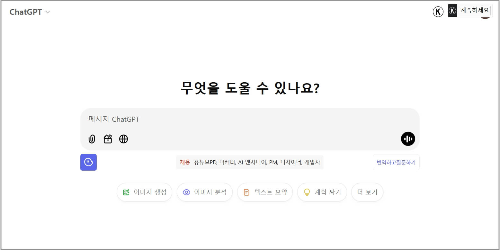 5. 회원가입 후 챗GPT 시작화면을 볼 수 있습니다. 이제 입력창에 메시지를 입력해 보세요.