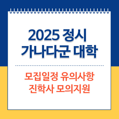 2025 정시 지원은 총 3번의 기회가 주어집니다. 가군과 나군은 인기 대학 학과가 몰려있고 다군은 모집대학은 적지만, 경쟁이 치열해지는 경향이 있어서 정시 지원 전략이 필요합니다. 2025 정시 가나다군 대학, 모집일정, 지원 전 모의지원을 할 수 있는 정보를 알려드립니다.